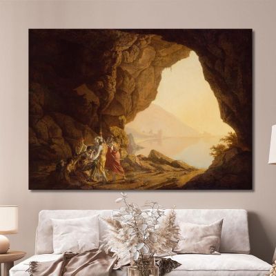 Vesuvius In Eruption Viewed From Posillipo Joseph Wright of Derby, jwd65 ภาพพิมพ์บนผ้าใบแคนวาส